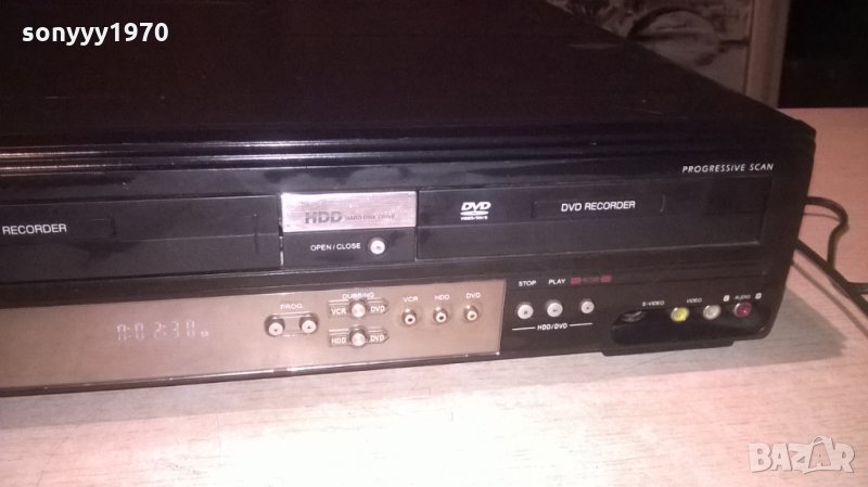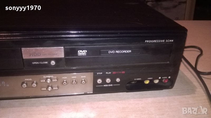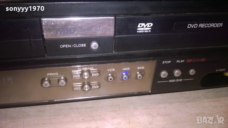 hi-fi stereo-digital audio out-optical/coxial здрава яка записваща машина 3-в едно-видео-твърд диск и двд-жесток рекордер-работи идеално на диск и на твърд диск е ок-видеото вкарва и вади касетата само-за профилактика-ремък може би-нормално за годините-от днес 28.02.22г пращаме със спиди или еконт с преглед и тест след превод на капаро за куриерската услуга поради зачестили некоректни потребители-поръчки само в тук в саита! по телефона и със смс не! краини цени! бартери не правиме! всеки ден нови неща-още над 18000 обяви тук