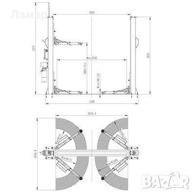 Подемник 4 т, електрохидравличен с отключване на рамената от таблото за управление.