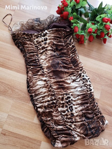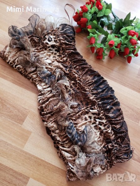 Дизайнерска Рокля с тигров принт и камъчета → Обява 27057994