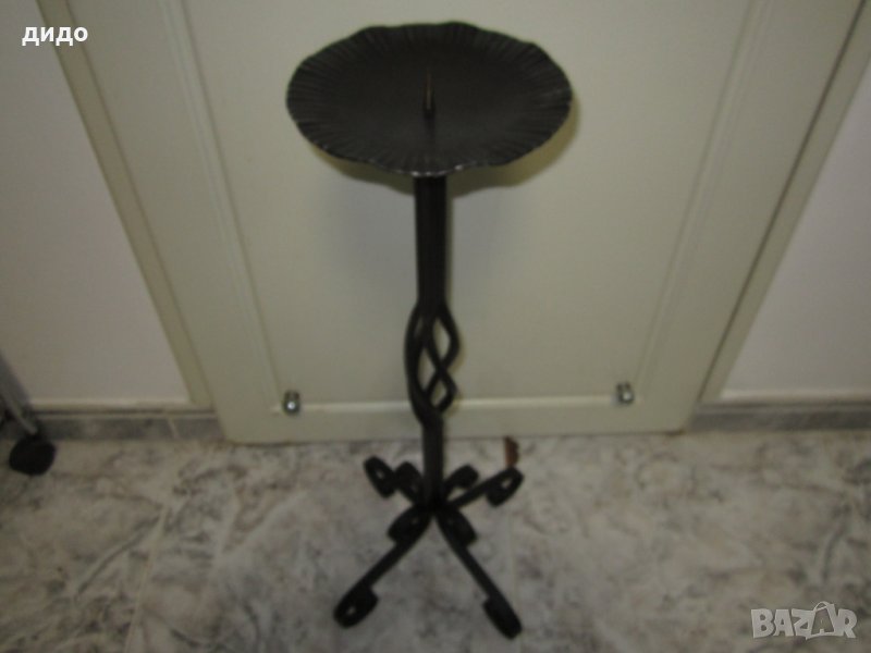 висок свещник от ковано желязо.Може да се ползва и за външен пепелник.Височина 65см.Внос Германия.