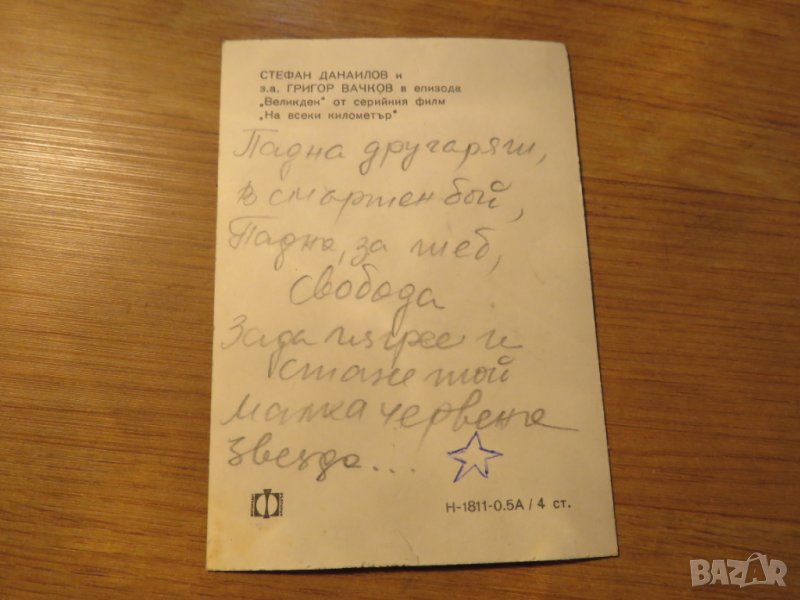 Картичка с Григов Вачков и големия Стефан Данаилов от сериала ,,На всеки километър,, - Издание 70те години - надписана .