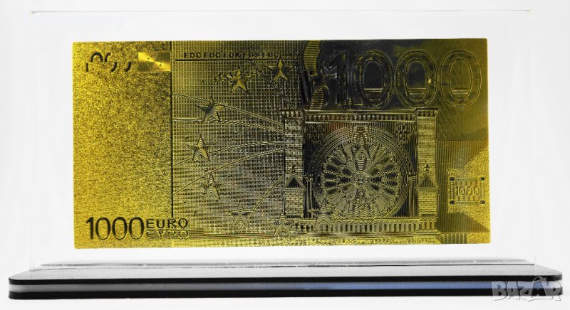 Златна банкнота 1000 Евро в прозрачна стойка - Реплика, снимка 1 - Нумизматика и бонистика - 27074765 Златна банкнота 1000 Евро в прозрачна стойка - Реплика, снимка 2 - Нумизматика и бонистика - 27074765 1/2