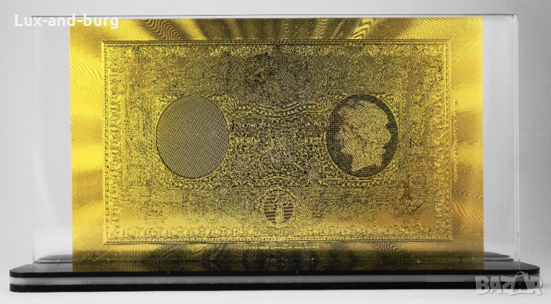 Златна банкнота 1000 Италиански лири в прозрачна стойка - Реплика → Обява 27080010