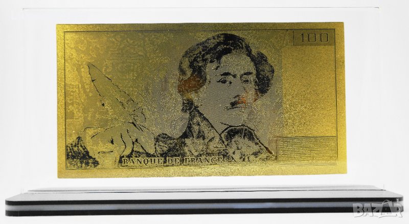 Златна банкнота 100 Френски франка в прозрачна стойка - Реплика, снимка 1 - Нумизматика и бонистика - 27080379 Златна банкнота 100 Френски франка в прозрачна стойка - Реплика, снимка 2 - Нумизматика и бонистика - 27080379 1/2