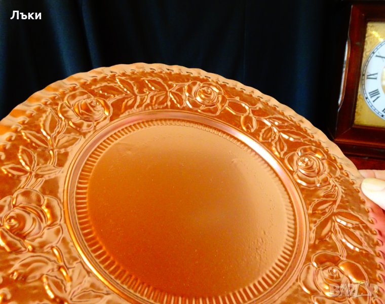 Немска метална чиния,декорирана с релефни рози.Височина 1.5