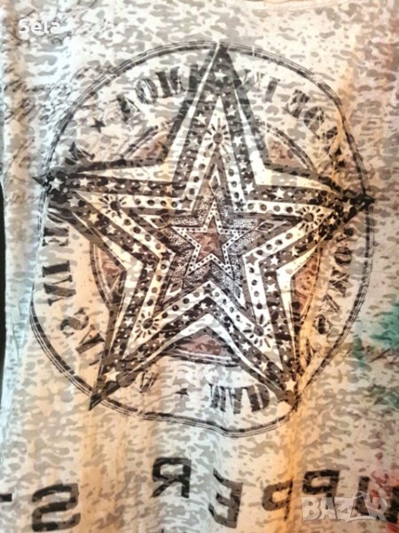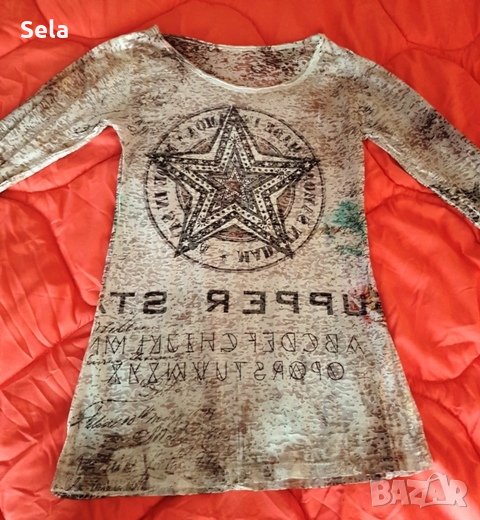Актуална блузка в бяло с много ефектни декорации. Леко прозрачна. Много мека, лека и ефирна материя.