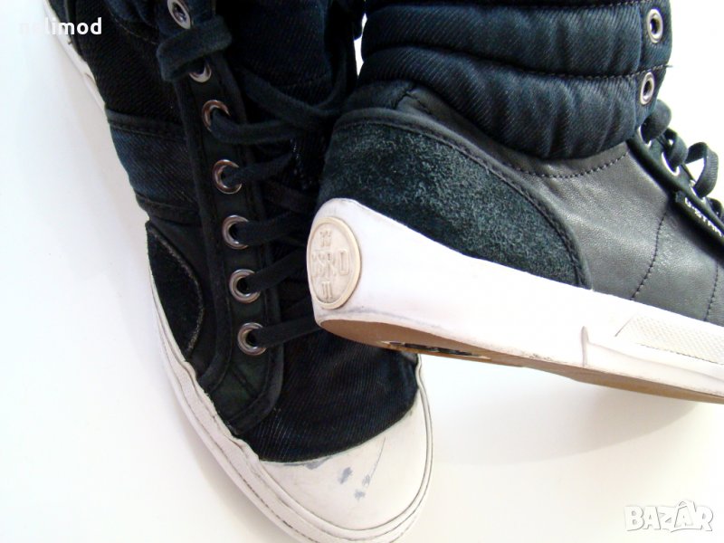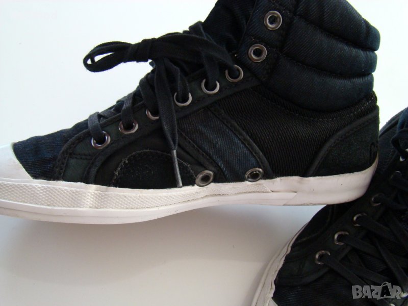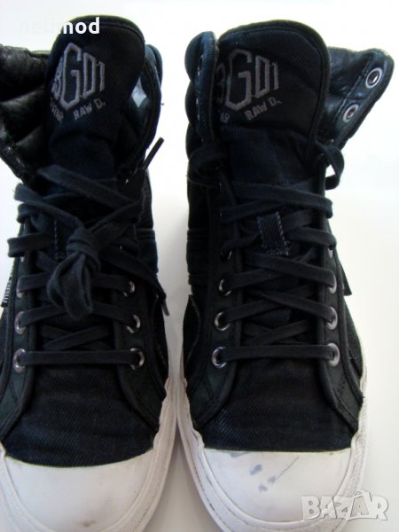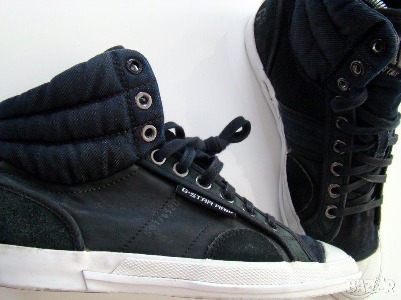 високи черни UNISEX кецки , актуален модел от G - STAR RAW оригинал 100 % size UK 5 38 номер , 24,5 см стелка , страхотно съчетание на ЕСТЕСТВЕНА КОЖА с плат ... много качествени и удобни кецки . отлично състояние , без забележки или следи от употреба . внос от Англия ...цена в магазин