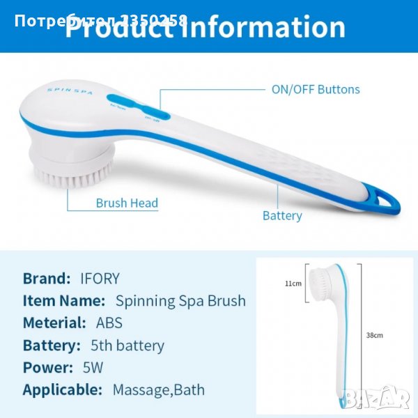 Най-нов модел вибрираща и въртяща се четка за тяло Spin Spa с различни приставки!
