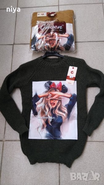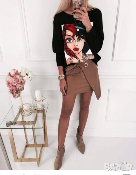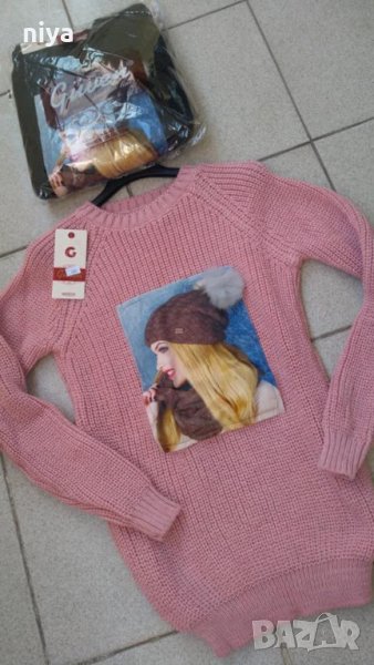 Нови! Пуловер с две лица, блондинка, фотограф и фен на Мини Маус → Обява 27105843