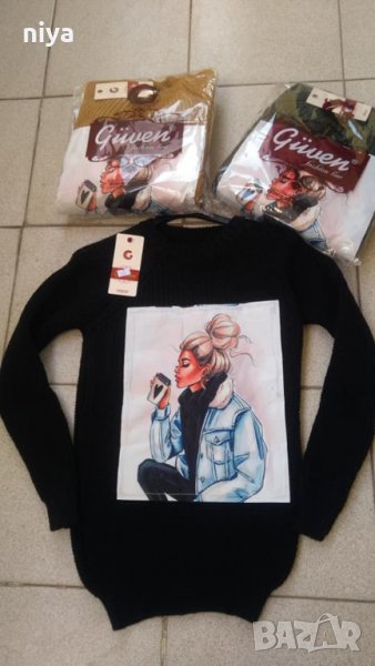5.Пуловер с апликация фотограф със пух в черен и бял цвят,С и М размер