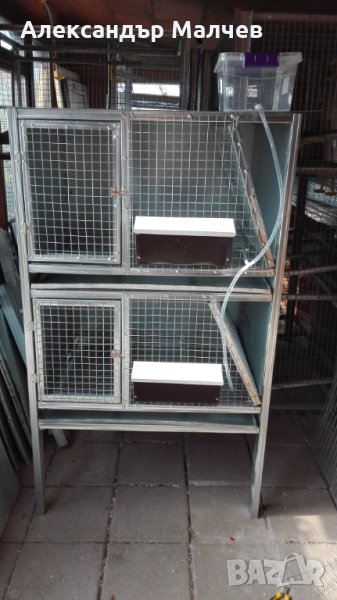 зайци. На 1, 2 и 3 етажа. Всяка клетка има хранилка, нипелни поилки и тава за лесно почистване на торта. Могат да бъдат изработени от ламарина или електрозаварена мрежа по желание на клиента.