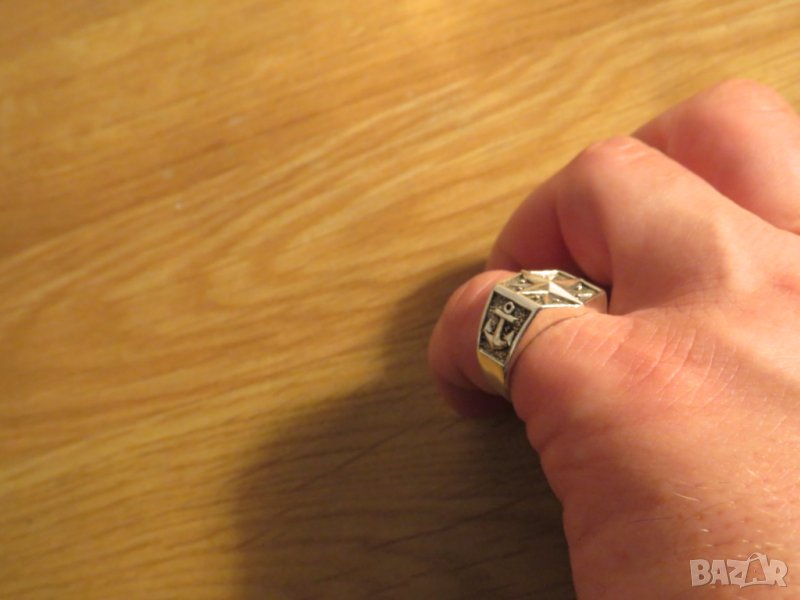 Стар мъжки сребърен пръстен с котва звезда НАТО - морски за ценители, моряци сребро
