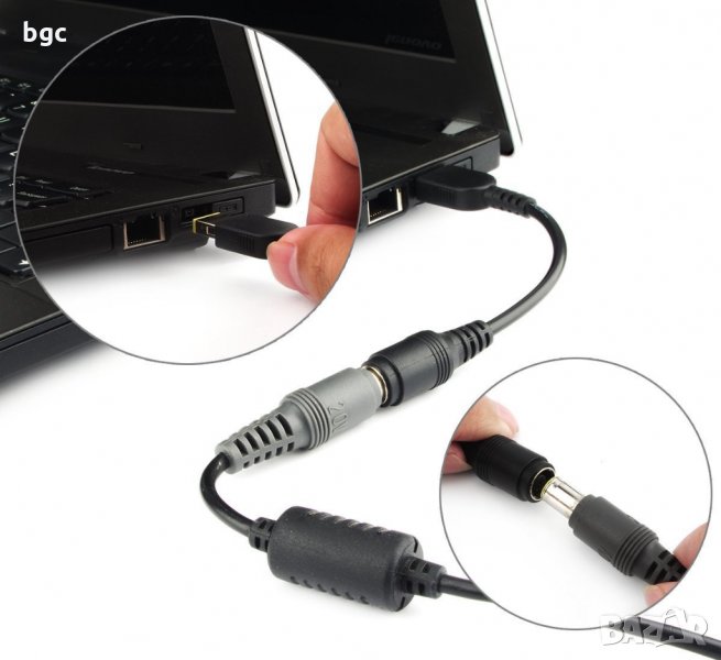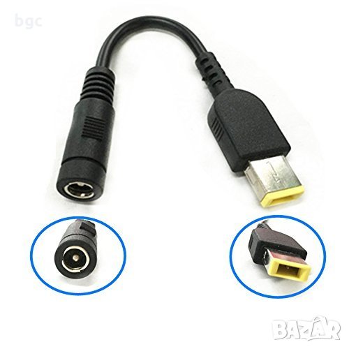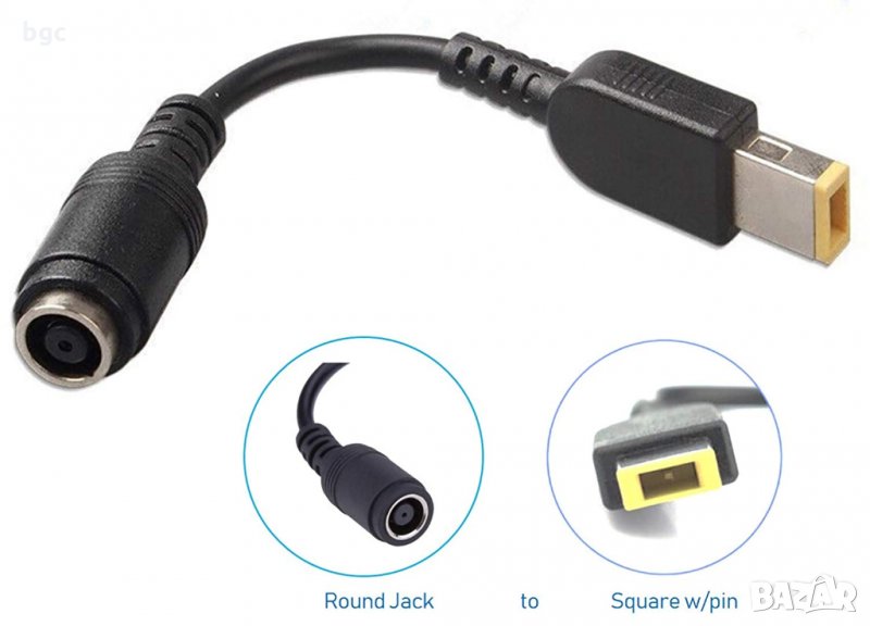 Този преходник ви позволява да ползвате Старите Леново зарядни с Кръгли букси към Новите модели лаптопи на Леново с правоъгълни букси.