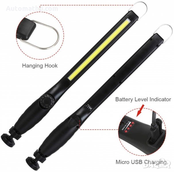 Тази модернизирана COB LED светлина се предлага с удължена светлинна лента, способна да осигури до 700 лумена за осветяване на големи площи. Интуитивният превключвател за набиране ви позволява да регулирате яркостта към желаната интензивност. IF Дълъг живот на батерията.Захранван от вградена 2200mAh батерия, тази акумулаторна работна светлина осигурява 10 часа ярка прожекторна светлина (средно ниво) с еднократно пълно зареждане. 4 сини LED индикатора на гърба ви помагат да следите оставащия капацитет на батерията. МАГНИТНА БАЗА 360 ° Съществува супер силна основа на магнит с максимална сила на дърпане 20 lb, магнитната работна светлина може да бъде прикрепена към всякакви метални повърхности за РАБОТА С БЕЗ РЪЦЕ. 360 ° въртящ се ъгъл осигурява постоянни и стабилни лъчи във всички посоки за подобряване на ефективността на работа. Устойчив и надежден изработен от подобрен ABS, черната матова преносима работна светлина осигурява, както надеждно осветление, така и превъзходна устойчивост при тежки условия на работа. Освен това, тази ръчна светлина за работа с батерия се отличава с ергономична противохлъзгаща се хватка за удобно държане. Кука, която се предлага заедно с тази LED светлина за проблеми, отгоре позволява лесно закрепване към кoлони, стени и повече места. Работи чудесно или като LED работна светлина и инспекционна светлина на работни места или като външен фенер за туризъм, къмпинг, колоездене, ремонт на автомобили, спешни случаи и оцеляване.