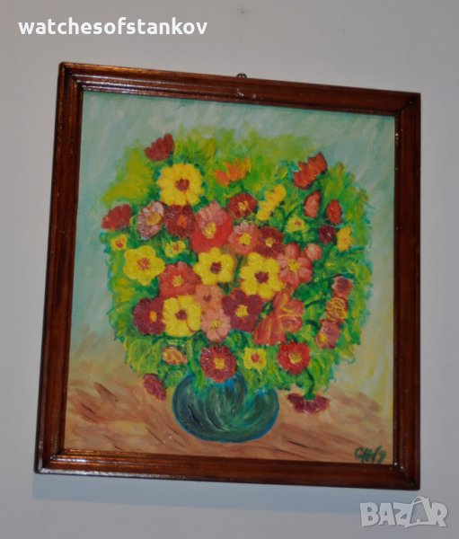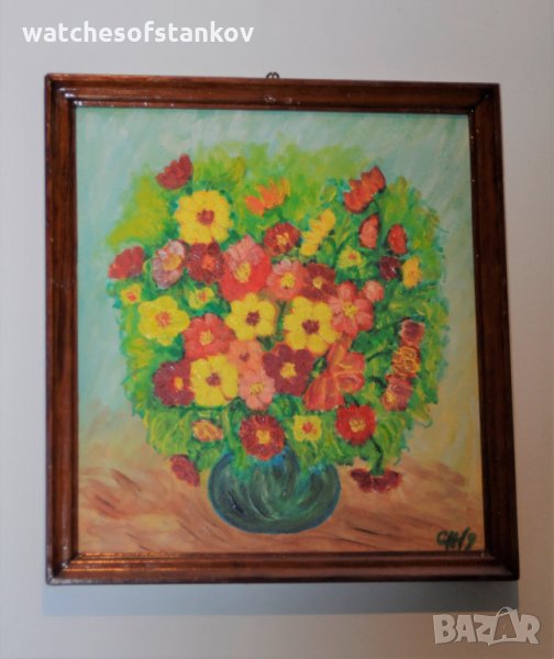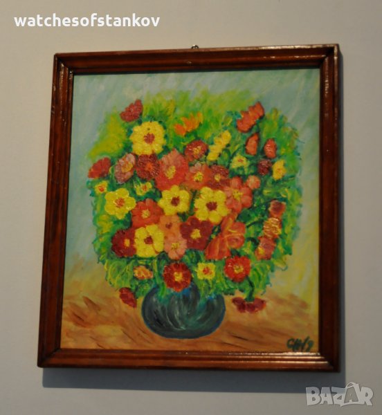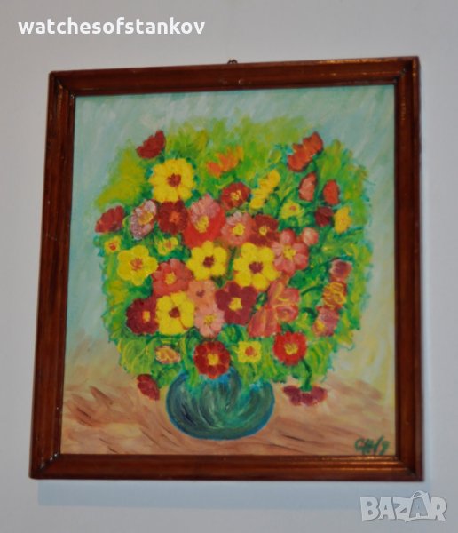 Стефан Ненов "Ваза с цветя" масло върху платно 26/23 см → Обява 27124182