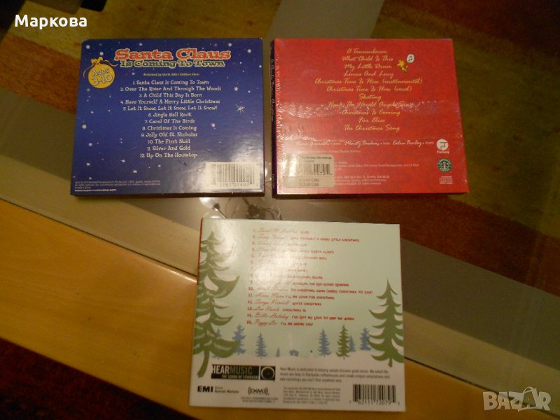 Три диска с детски коледни песни. В перфектно състояние. Единият е неразпечатан. Донесени от САЩ. Всеки по 10 лева.