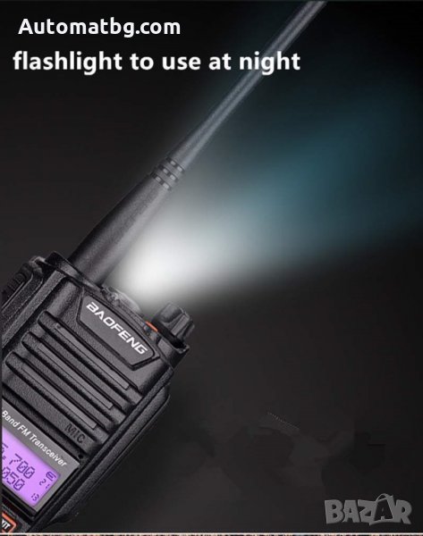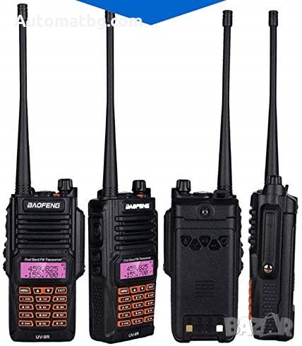 Представяме Ви най-новият модел професионална радиостанция Baofeng UV-9R! Моделът е с множество подобрения и иновации, увеличен обхват и дълготрайна батерия. Станцията е супер устойчива и херметична, изцяло ударо, прахо и водо устойчива и може да работи под вода. Уникална станция независеща от околната среда, влажност или запрашеност, която има възможност да следи и двете честоти едновременно - Simplex TDR function. Обхватът е забележителен - 8-10 км в гора или пресечена местност. Напълно подходяща за лов, риболов с лодки, къмпинг, ски, планинарство, охранители и служители на молове, ресторанти или търговски комплекси.