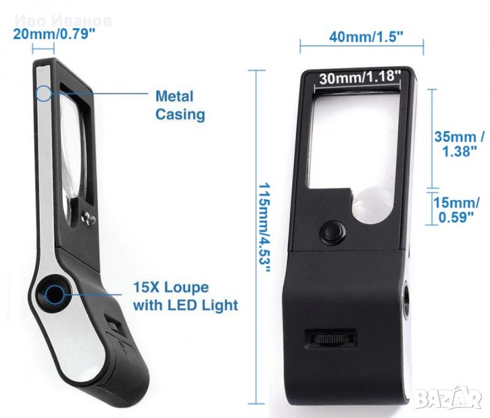 диаметър 21мм.Подходяща за дребен шрифт, бижута,монети,антики,марки и