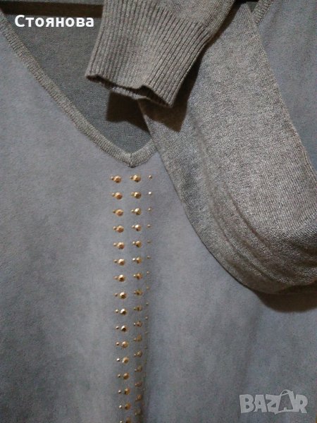 Продавам: 1.Сива мека блуза/пуловер, размер 46/48, в лицевата част е плюш кадифе, ориентировъчни размери: широчина - разстоянието измерено между подмишниците едностранно - 58 см., дължина измерена от рамото до долу - 66 см. - цена 9 лева и 2.Черна блуза плюш кадифе с лек брокат, по етикет ХL, отговаря на 44/46 размер, ориентировъчни размери: дължина от рамото до долу - 62 см., широчина - 45 см.(разстоянието измерено между подмишниците едностранно и ханша), дължина ръкав 58 см. - цена 8 лева