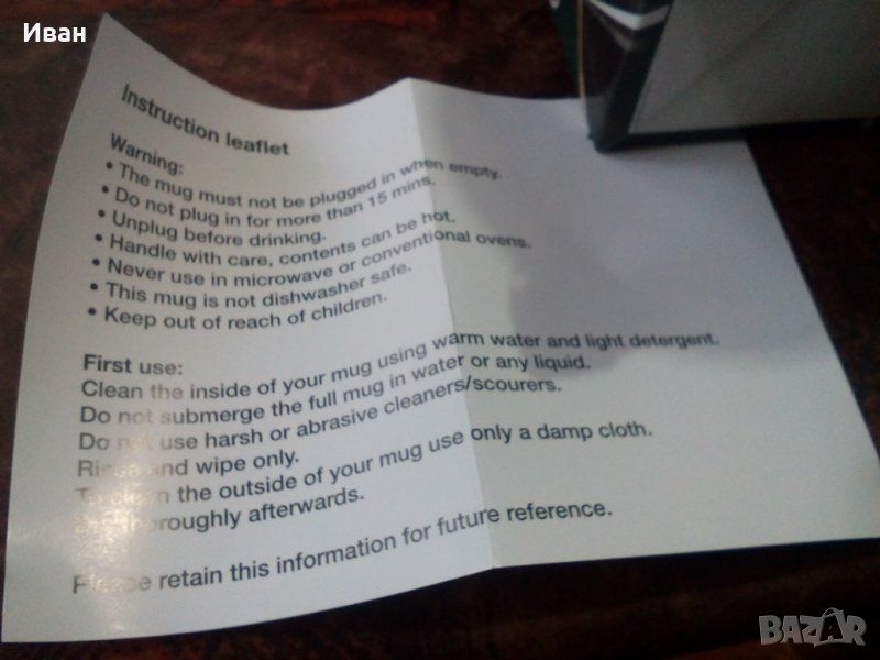С чашата има и адаптер с дълъг кабел ,който се свързва за изхода за запалката на колата.
