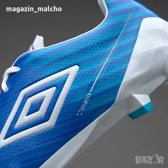 Отличаващи се с изключително лека, текстурирана горна част, футболните обувки Umbro Velocita са предназначени за ви направят по-бързи със или без топка. Леката подметка включва многопосочни гъвкави канали и уникална конфигурация на шиповете, което подобрява сцеплението на естествените терени.