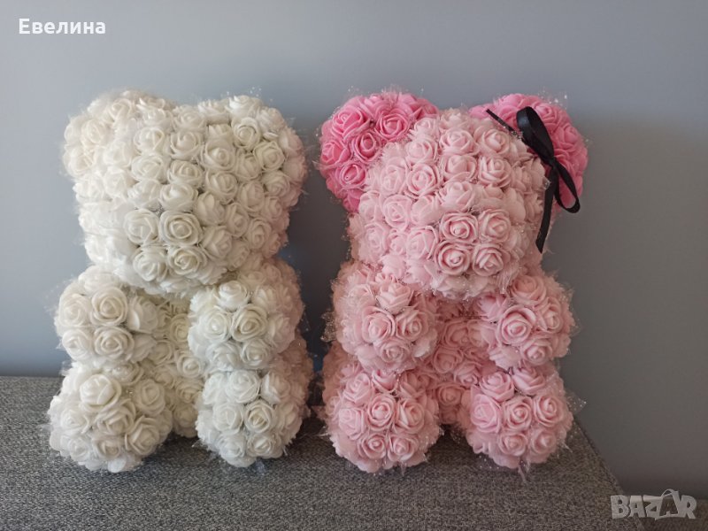 Мече от рози за Свети Валентин, кръщение, подарък, моминско парти - ръчно направено 23 см → Обява 27169638