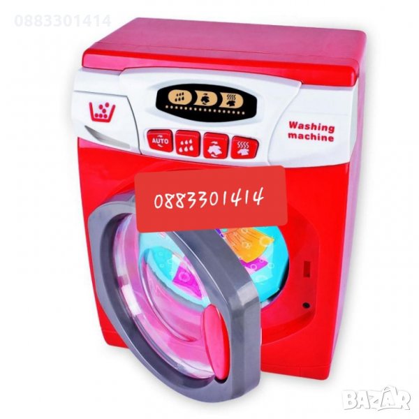 Детска пералня в червен цвят със специални светлинни и звукови ефекти.