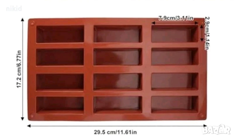 12 тесни правоъгълни форми форма мюсли бар силиконов молд форма десерти сапун гипс → Обява 27171261