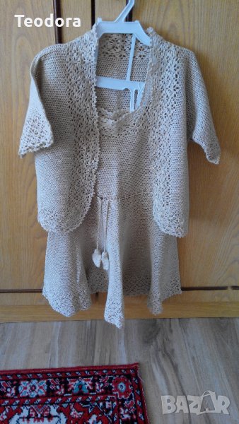 Плетен сукман с болеро бежав цвят д-60 ш-32 рам-34 в кръста-32 дължина на болерото-35 ширина на презрамката 14см
