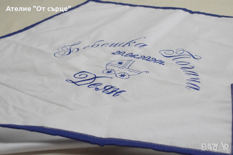 За сладка питка. Размери 60*60см ,памучен плат. Цвят бял, с избор на цвят бродерия! С картинка и име - 16.80лв