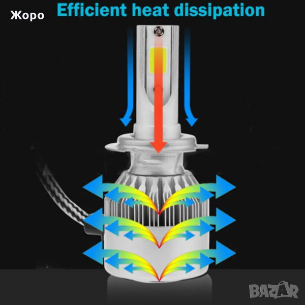 LED крушките са с COB ( chip-on-board) диод от ново поколение, монтиран върху алуминиев радиатор с вентилатор за по-добро охлаждане.