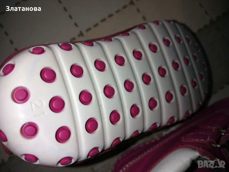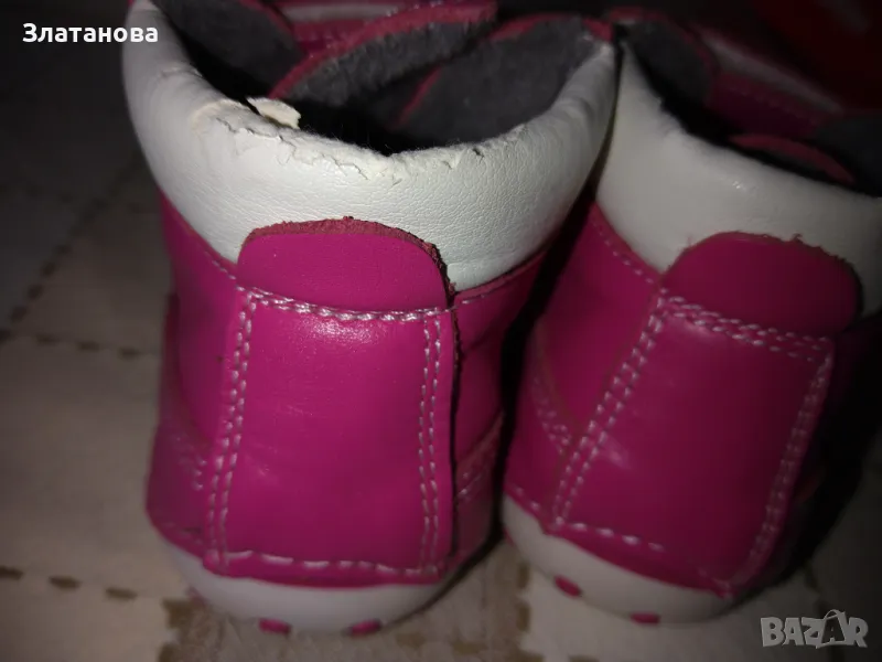 Миналата зима ни бяха големи а сега за съжаление са ни малки. Стелка 13,5 см. Бялата част отгоре не е естествена кожа и започна да се рони. Затова цената и такава.
