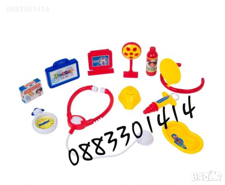 Детски лекарски комплект от 12 части инструменти и аксесоари - легенче в син цвят,