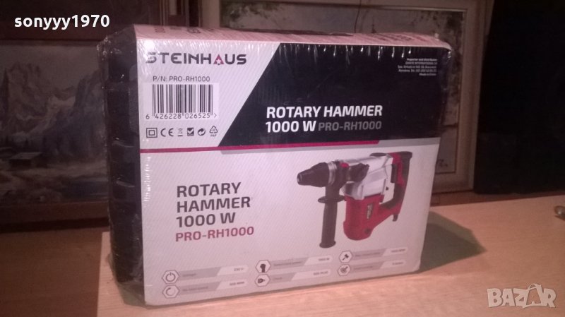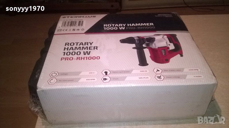 Перфоратор Steinhaus PRO-RH1000, 1000W, 850 об/мин, 4.0J, Патронник SDS-Plus, 3 функции, Кitbox + Ак