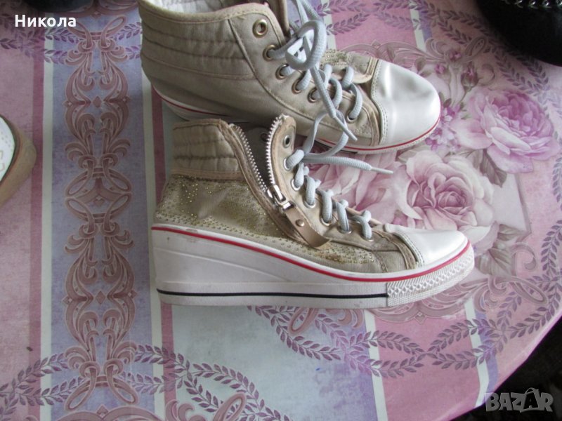 Представям за продан следните дамски обувки, нови и ползвани запазени без скъсано и протрито.Черни балерини-продадени. Нови ботуши от джинсов плат със специална гумираноплатнена подплата с цип и връзки №42 Спортни ботуши Адидас-продадени. Бели кожени ботушки-продадени. Спортни боти-гуменки с висока платформа-подметка ползвани запазени с цип и връзки №37 на цена-5лв. За повече въпроси се обадете или пишете. Пратката ще бъде изготвена с 10% отстъпка при доставката по ЕКОНТ или СПИДИ.