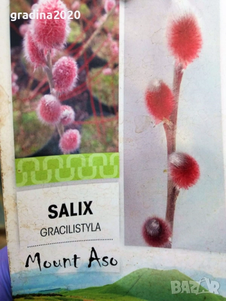 4. Върба - Salix gracilistyla 'Mount Aso' ( грацилистяла' моунт асо') с червено – розови цветчета. Размер 15-25см за 12.50лв (6.39 €)