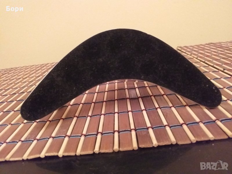 Метална поставка под формата на бумеранг с часовник и поставка за химикалка,с мека подложка.