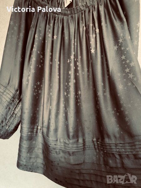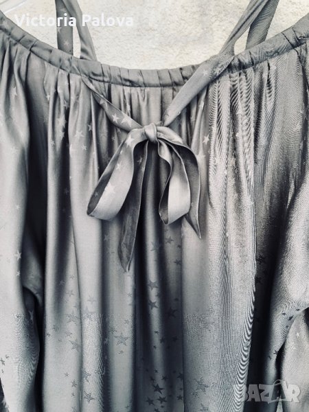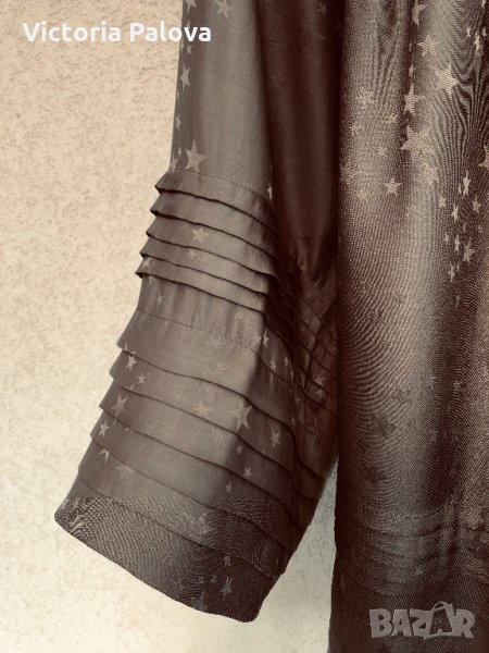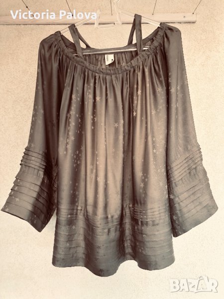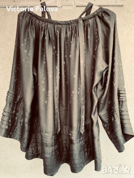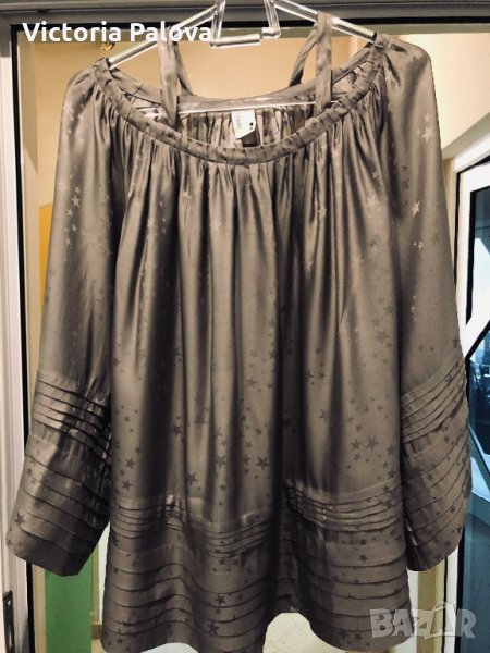 Изключително красива блуза,тежка коприна,лесно се поддържа.неупотребявана,изпрана.блузата е модерно разкроена,изглежда необикновено ефектно,може да се използва и за парти.