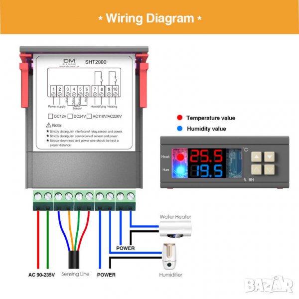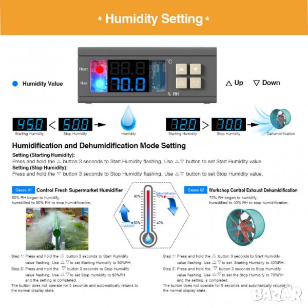 - измервана влажност - от 0 до 100%