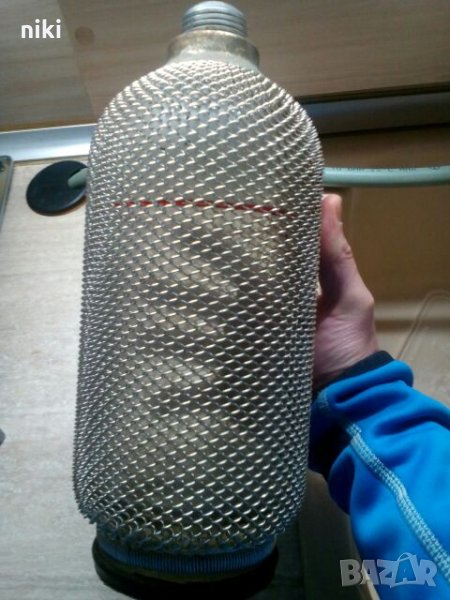 Здравейте продавам голяма стъклена бутилка със сифон обвита с алуминий.Може да се ползва за газирана вода или за колекция.При интерес на посочения телефон