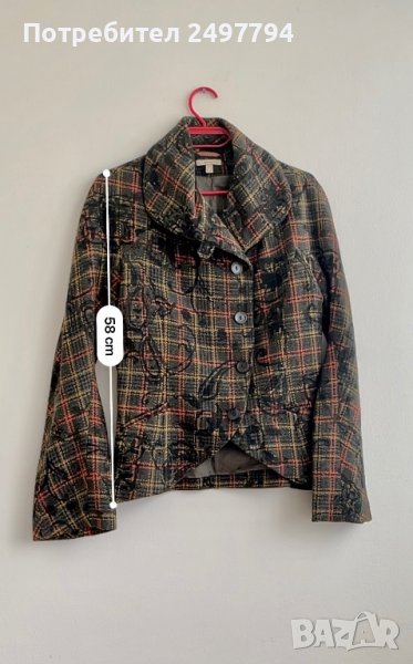 Оригинално и елегантно дамско сако Capasca. Много интересна кройка, удължено в задната част, с интересно закопчаване отпред, много елегантно и запазено