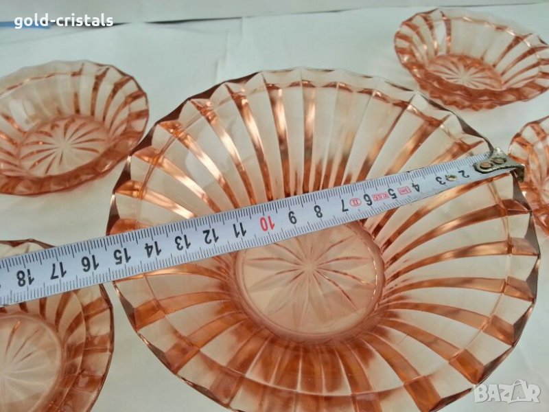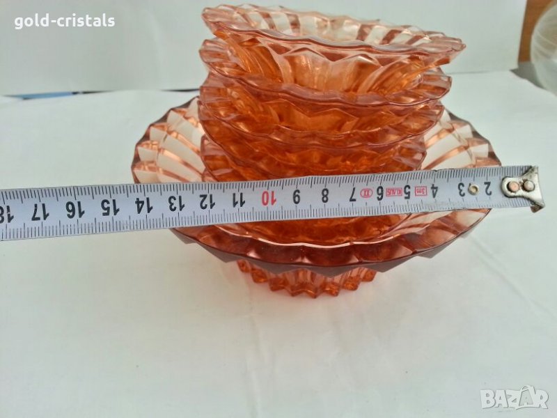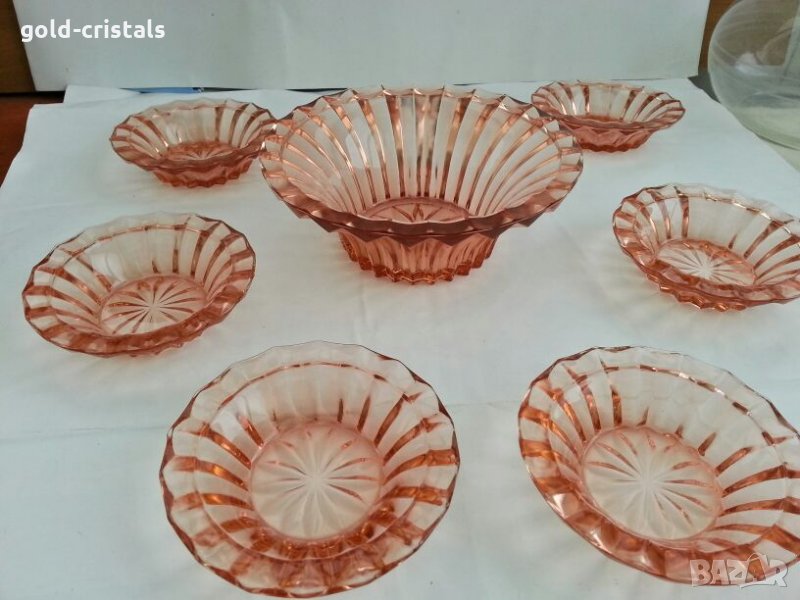 Ретро стъклени купички цветно стъкло кристално стъкло купа фруктиера и 6бр купички чинийки комплект сет лот стари старинни ретро арт декор винтидж колекция стари старинни антикварни предмети обзавеждане за дома и семейството подходящи за подарък за ценители и колекционери