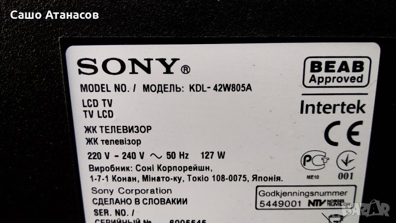 телевизор SONY KDL-42W805A със счупена матрица (панел LC420EUF (FF)(P2) )
