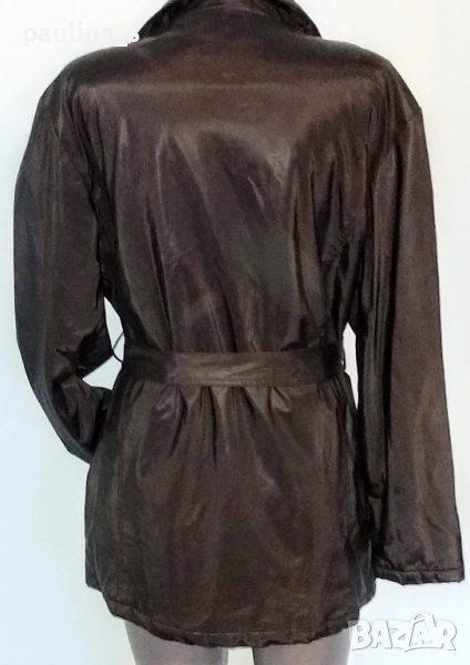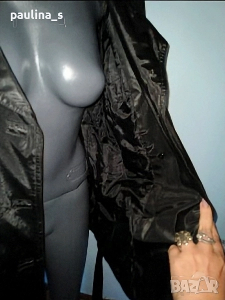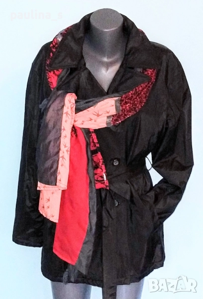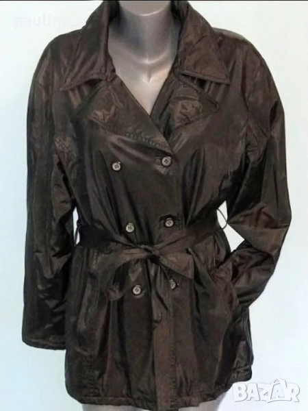 2️⃣. XL / 2XL - "Suchita". Цената е крайна 39,99лв / 20 евро. Палто / манто, тренч, с подплата и кожен ефект. Материята е промазана, противовятърна и непромокаема. Подплатата е капитонирана, дрехата е топла. Моделът е двуреден тренчкоут с джобове и колан. Изискана дреха, без дефекти и етикет! Шалът е примерен, продава се отделно 19,99лв / 10 евро.