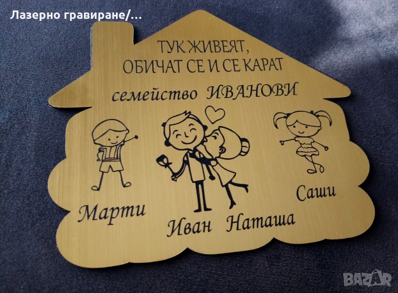 Лазерно гравирани табели за врата. Надписът е с текст по ваш избор и изображения на членовете на семейството, които посочите :)