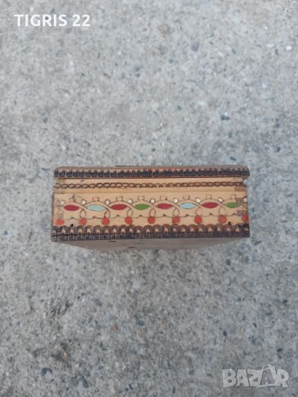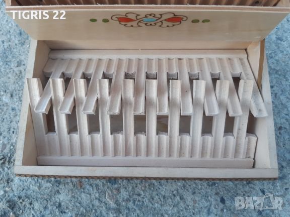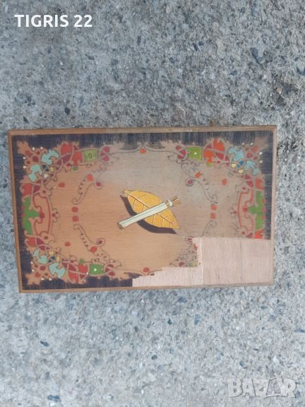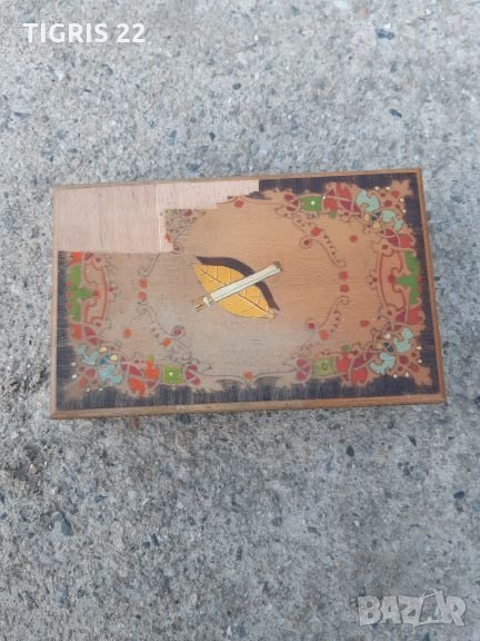 Стара - ретро кутия / табакера _ за цигари. Автоматична - като се отвори капака се подават 20 броя цигари готови за взимане , отделно има още 20 броя на склад - общо 40 броя цигари. Здрава и направена със вкус. Подходяща за колекция , механа , като атрибут на камина , заведение , къща за гости , интериор , сувенир , както и за използване по предназначение. На капака има липсващо от фурнира. Ако някой го дразни може да се премахне един слой и да се изшкури и лакира. Така цвета ще е естествения цвят на дървото. Може да се залепи и нещо по Ваш вкус. Във обявите имам още една такава здрава , но е за 1 кутия цигари - 20 броя. Ако се закупят и двете заедно общата цена е 28 лв. Доставката е за сметка на купувача и е със 10% отстъпка на Еконт.