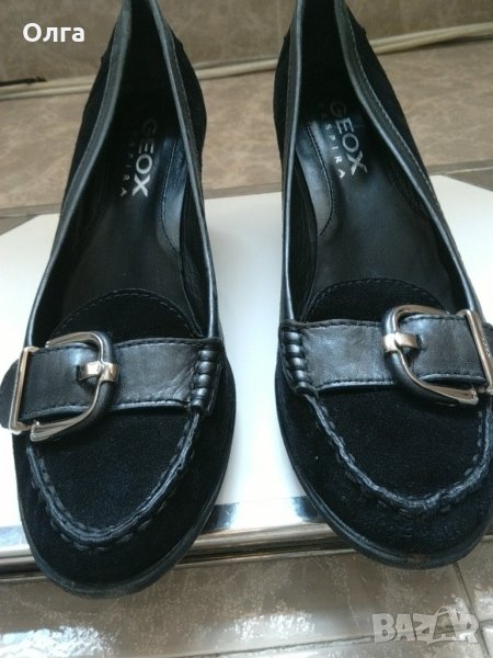 Черни кожени (естествена кожа и естествен велур)марка Geox, номер 39, стелка 24,5см. Височина платформа 7см. Отлично запазени, без забележки.