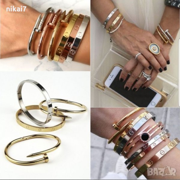 дамска гривна Cartierr 2 модела огънат пирон или белезник с винтове