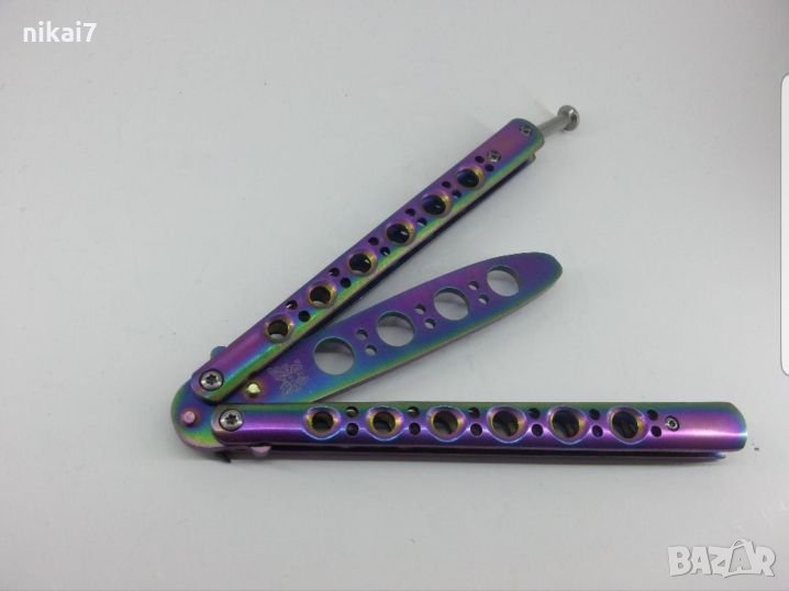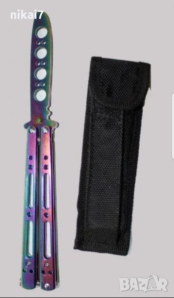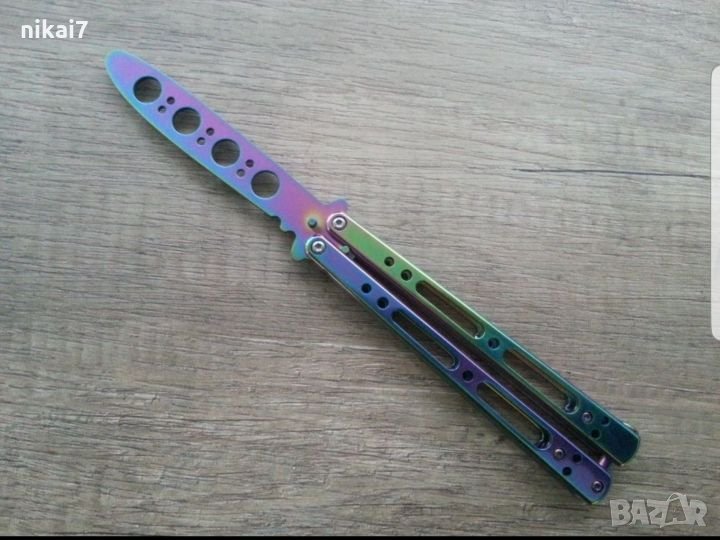 Тренировъчен нож пеперуда в хамелеонов цвят с много добро качество.
