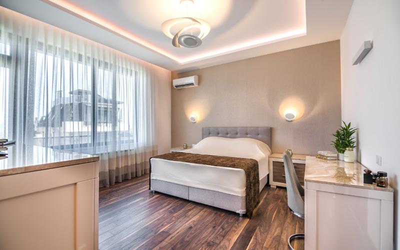 Features: Very bright and spacious, with a complete design project for the furniture. Garage for two cars and parking spaces. All year round access and the perfect road. The complex has 5000 sq. m area with sports facilities, sauna, playgrounds with animation. The price is without VAT.